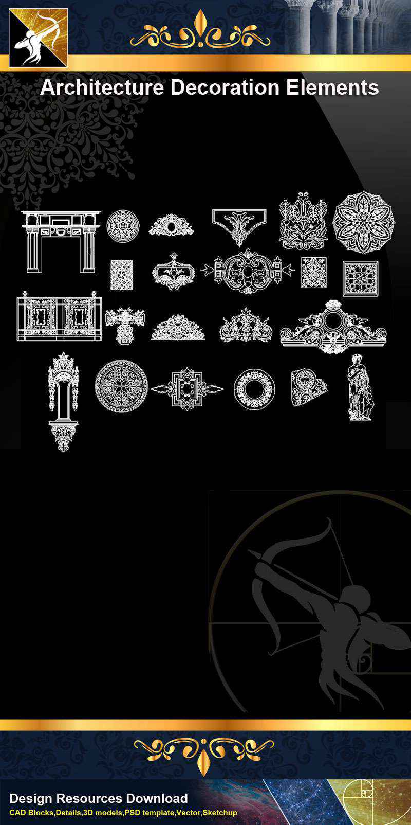 ★【 Free Architecture Decoration Elements V.11】@Autocad Decoration Blocks,Drawings,CAD Details,Elevation