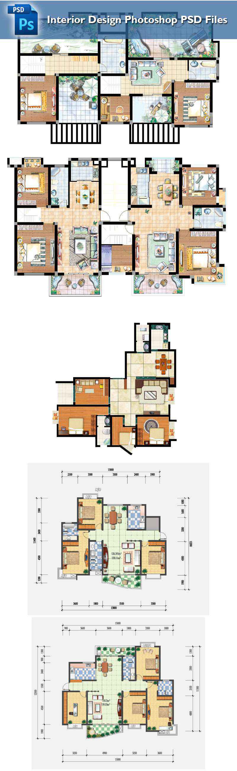 Photoshop “PSD” file can be used in architectural plans rendering, interior design and landscape design.