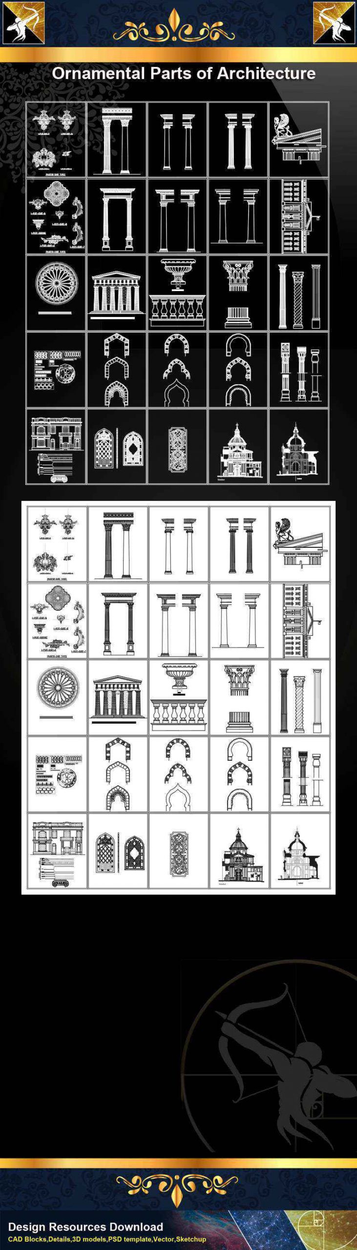 ★【Ornamental Parts of Architecture -Decoration Element CAD Blocks V.2】@Autocad Decoration Blocks,Drawings,CAD Details,Elevation