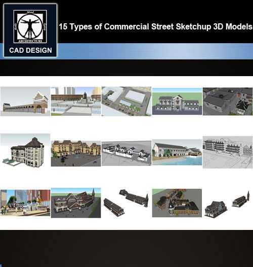 ★【Sketchup 3D Models】15 Types of Commercial Street Design Sketchup 3D Models V.3
