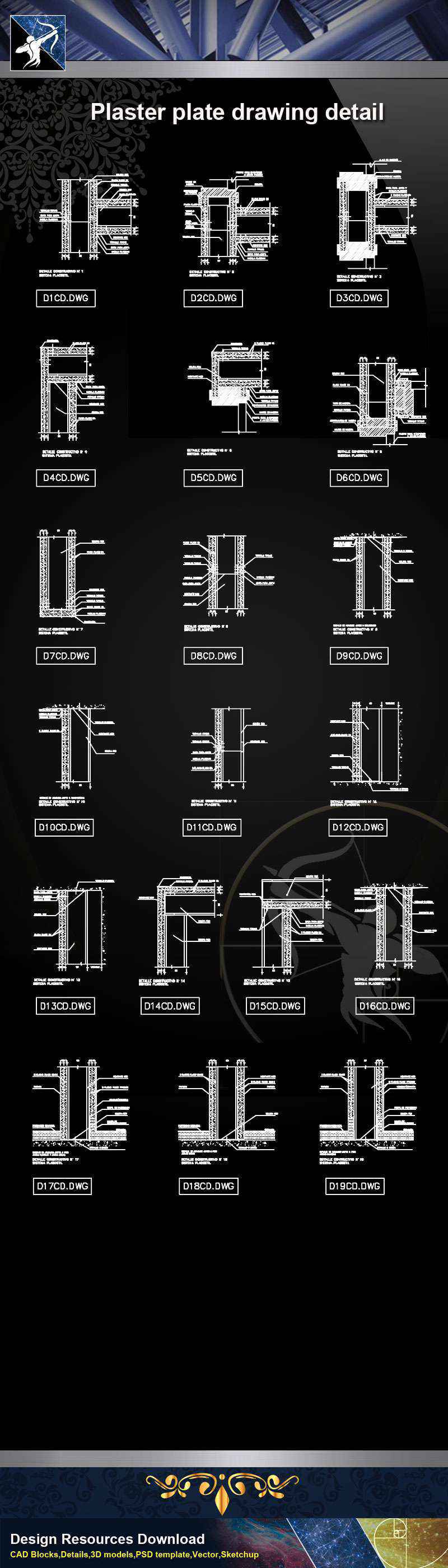 【Architecture CAD Details Collections】Plaster plate drawing detail